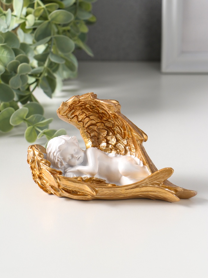 Сувенир полистоун "Спящий белоснежный ангел с золотыми крыльями" 5,7х13х7,5 см