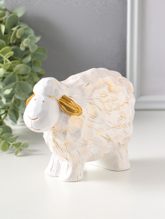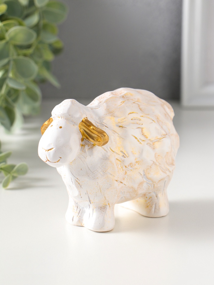 Сувенир полистоун "Барашек" белый с золотом 5,5х12х8 см