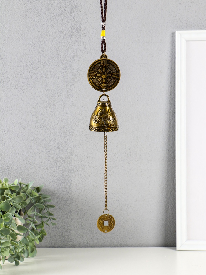 Колокольчик подвесной металл «Монета с буддой», 1 колокол, d=4.8 см, 39×5.3×4.8 см