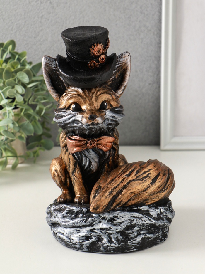 Копилка для денег «Лиса в шляпе», гипс, 24×15 см, под бронзу с серебром