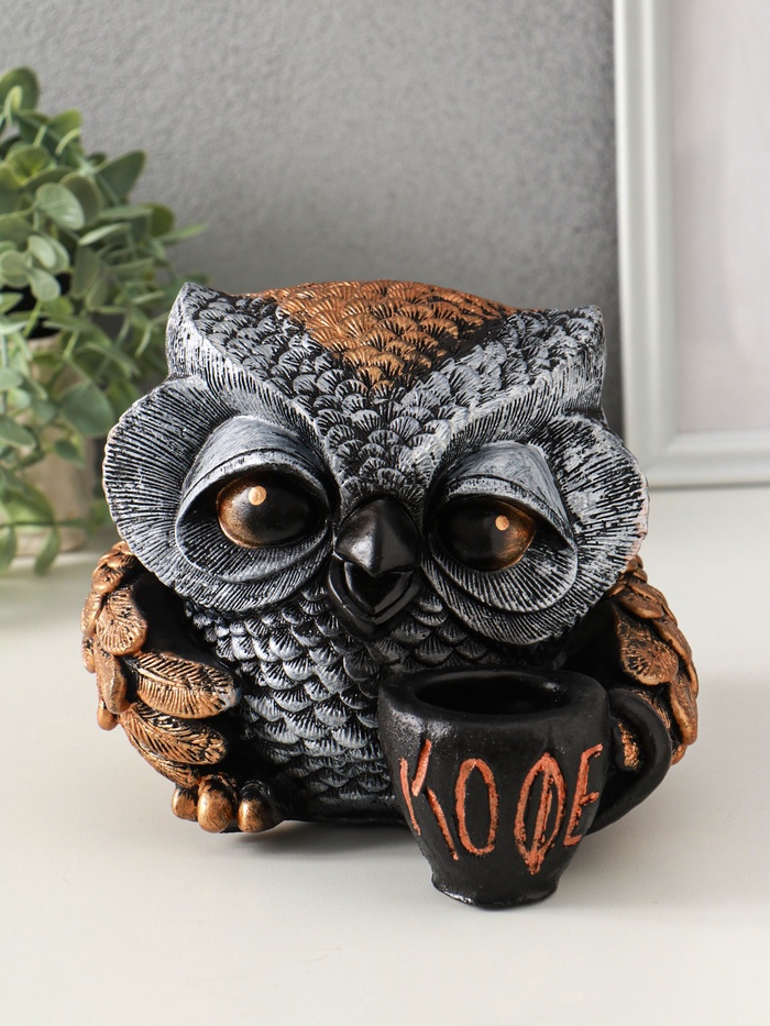 Копилка для денег «Сова с чашкой», гипс, 15×18 см, под бронзу с серебром