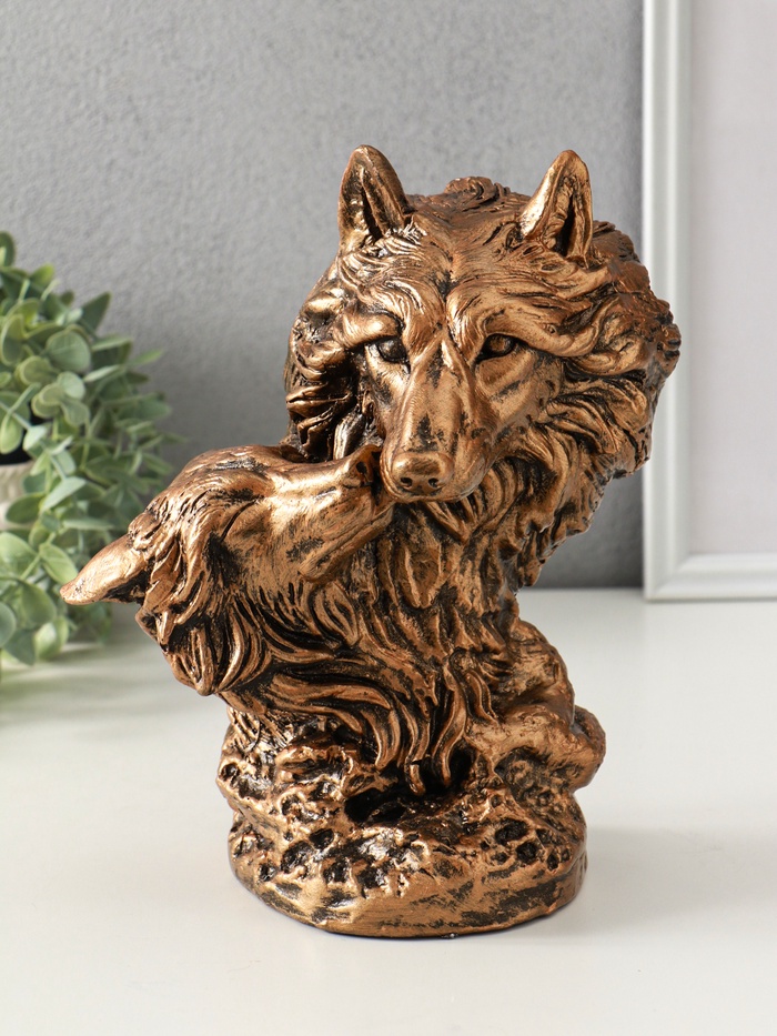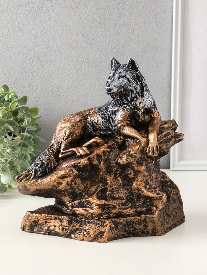 Копилка для денег «Волк на скале», гипс, 16×28×27 см, под бронзу с серебром