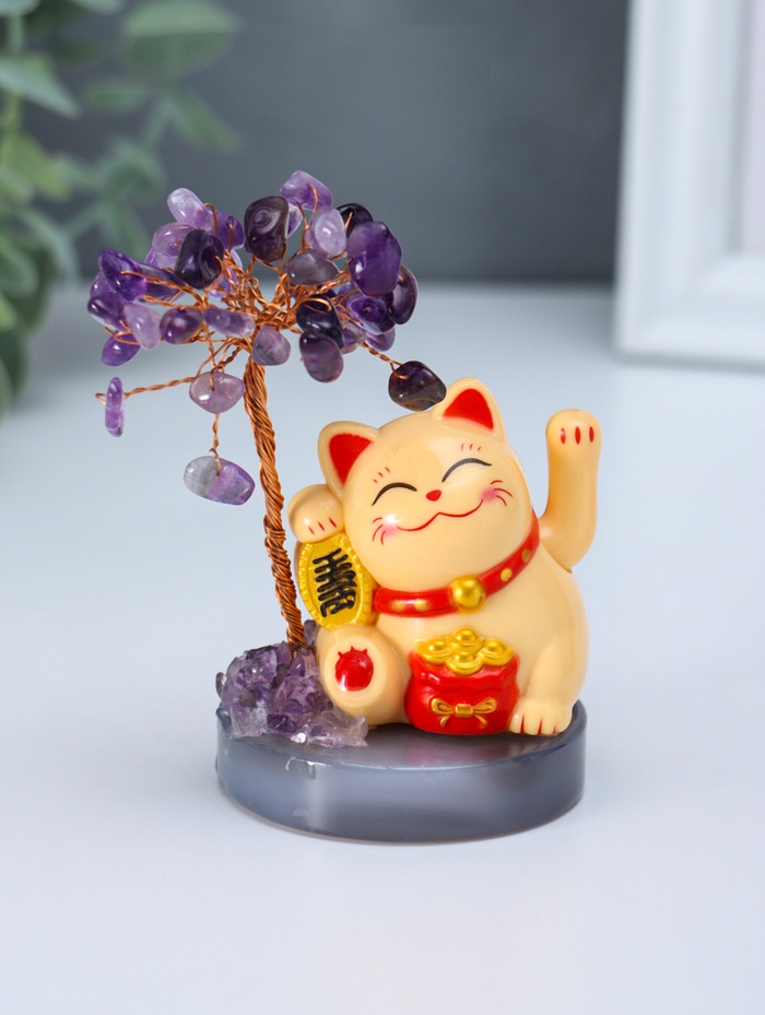 Маятник настольный антистресс от солнечной батареи «Жёлтый Манэки-нэко у дерева», 36 камней, 5.5×5.5×11 см