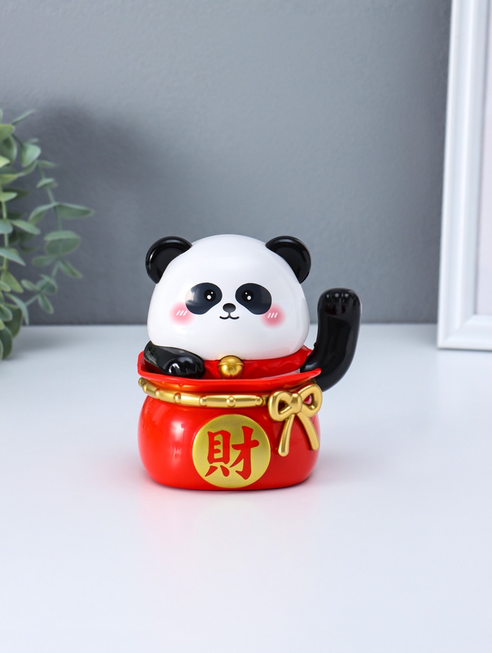 Маятник настольный антистресс от солнечной батареи «Панда в красном мешке», 11.2×14.3×15.3 см