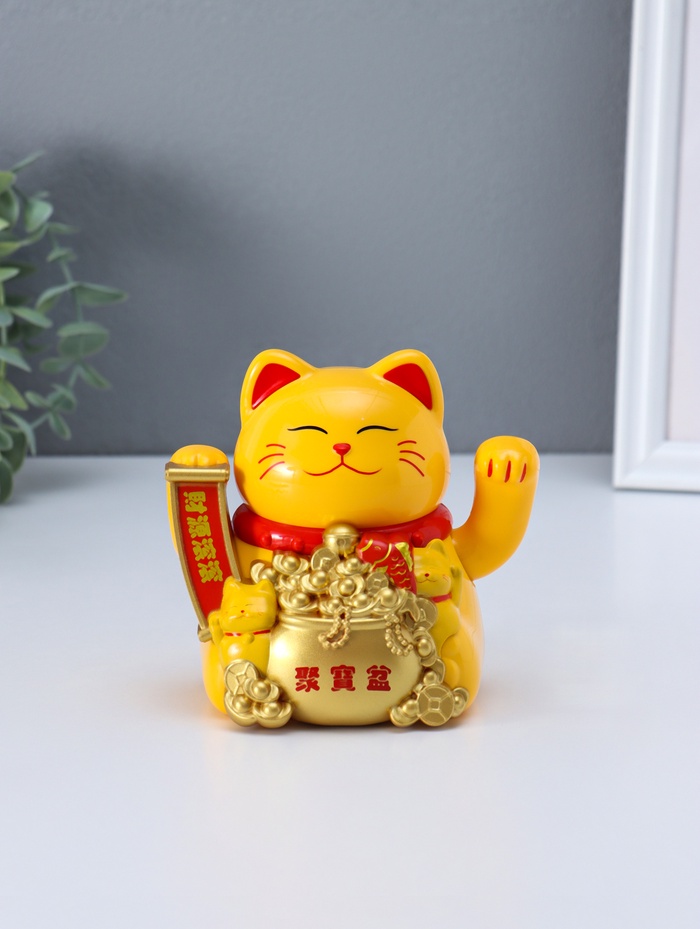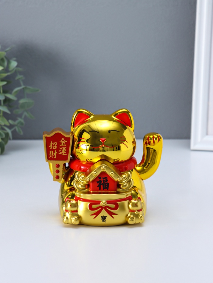 Маятник настольный антистресс от солнечной батареи «Манэки-нэко с золотыми слитками», керамика, 10×11×10.8 см