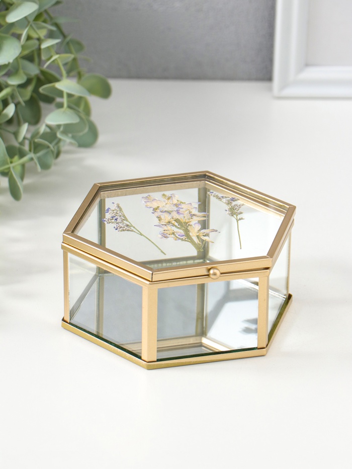 Шкатулка стекло с металлическим каркасом "Сухоцветы" многогранник 11,3х13х5,7 см
