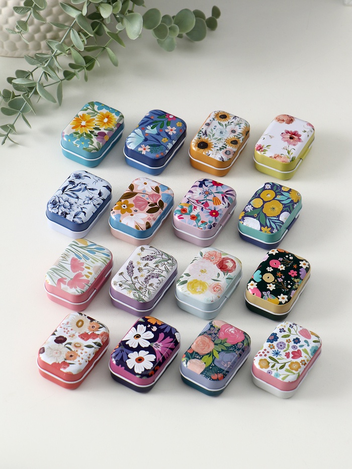 Шкатулка для хранения мелочей, украшений «Прямоугольная. Цветочки», металл, 5.8×4.2×2.6 см, МИКС