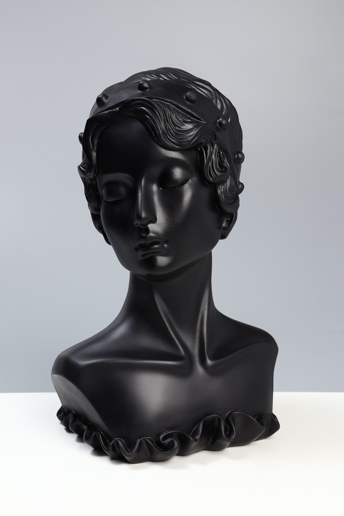 Бюст «Девушка в цветах», анфас, 17.5×13.5×29.5 см, чёрный