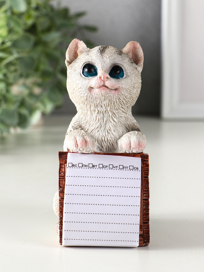 Фигурка с блокнотом 20 листов «Серый котик», полистоун, 6.5×5×11 см