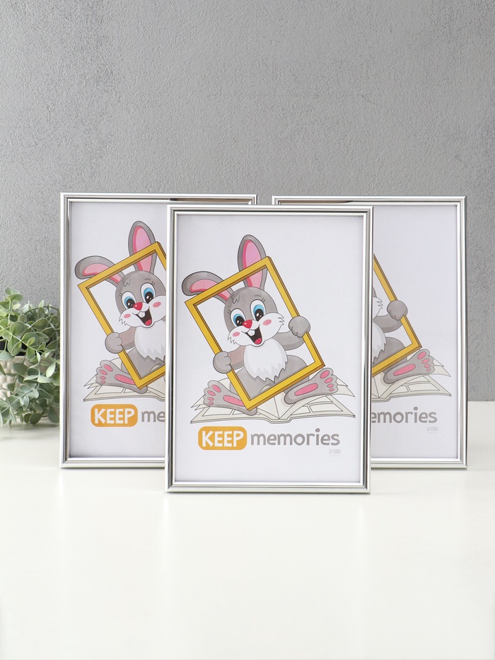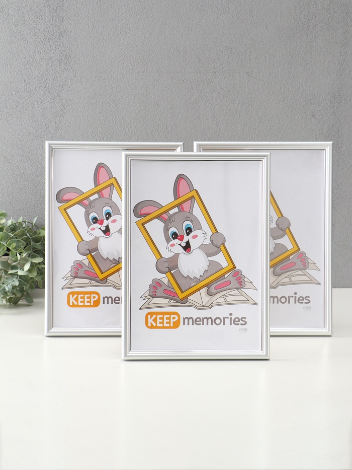 Набор фоторамок для фото 21×30 см Keep memories «Гамма», с подножкой, 3 шт., (пластиковый экран), серебро