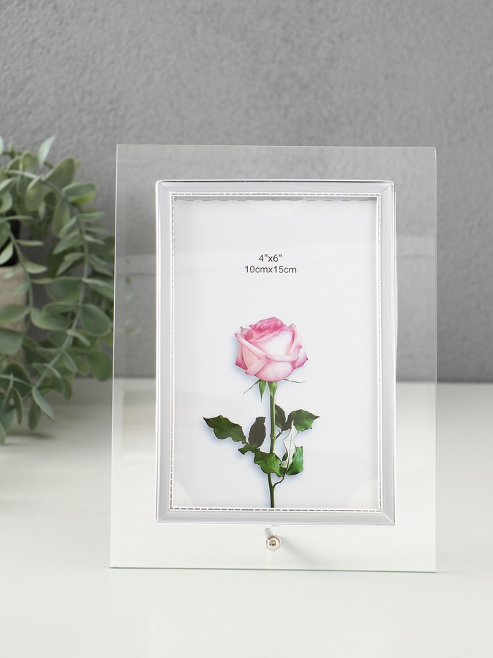 Фоторамка для фото 10×15 см «Серебряный кант», стекло, вертикальная, выгнутая, прозрачная, 15.5×20 см