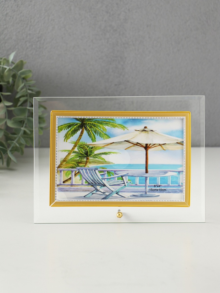 Фоторамка для фото 10×15 см «Золотой кант», стекло, горизонтальная, прозрачная, 20×14.5 см