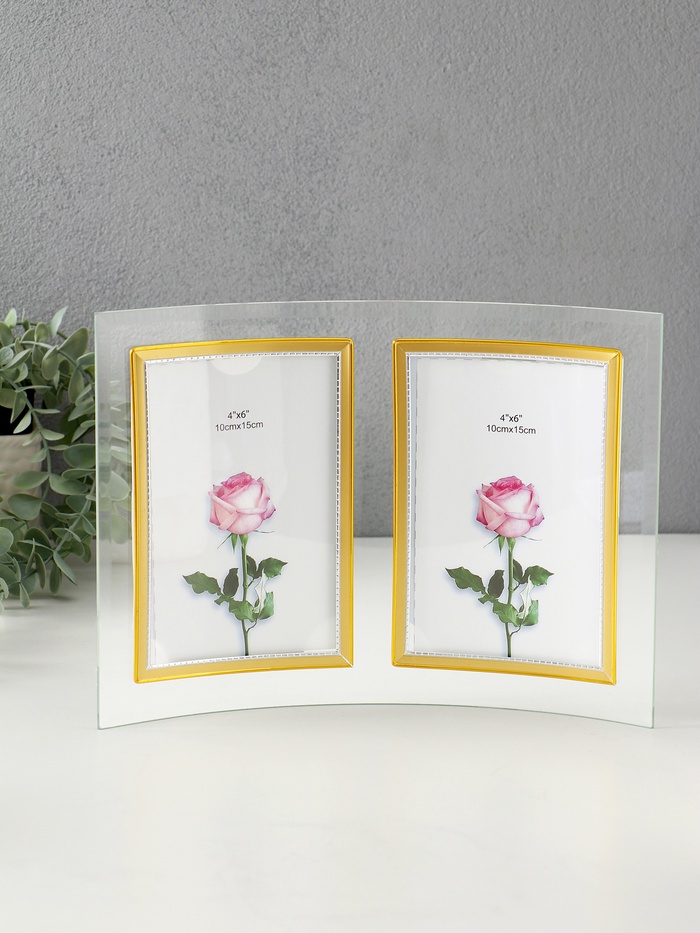 Фоторамка-коллаж на 2 фото 10×15 см «Золотой кант», стекло, вертикальная, закруглённая, прозрачная, 28×20.5 см