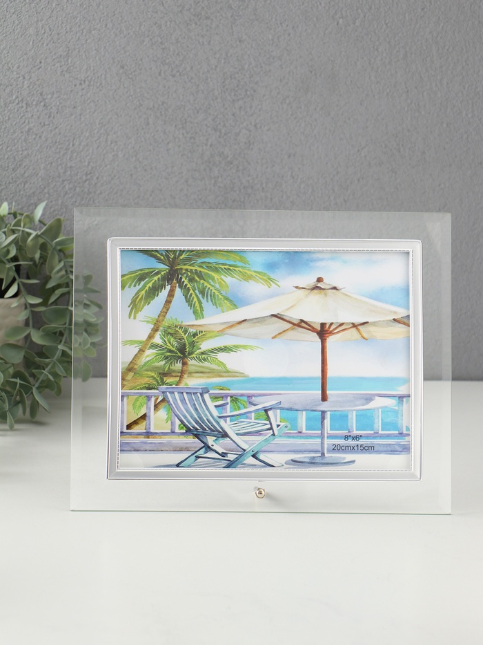 Фоторамка для фото 15×20 см «Серебряный кант», стекло, горизонтальная, выгнутая, прозрачная, 25.5×21 см
