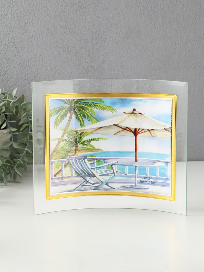 Фоторамка для фото 15×20 см «Золотой кант», стекло, горизонтальная, закруглённая, прозрачная, 23.5×20.5 см