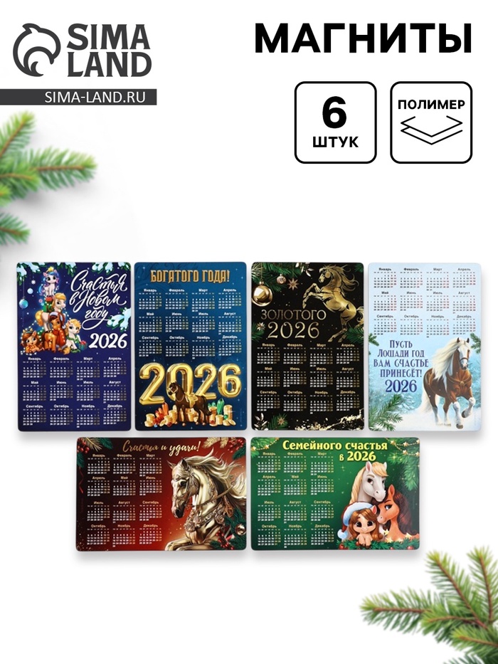 Магниты новогодние «Календарь лошадь», набор 6 шт., полимер