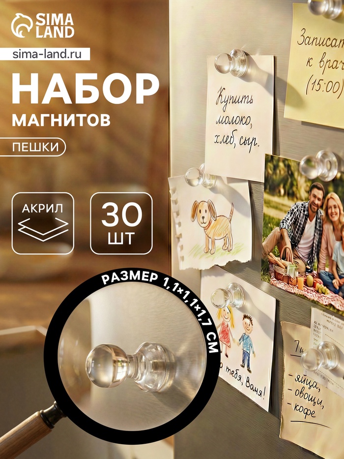 Набор магнитов для доски «Пешки», 30 шт., на холодильник, акрил, 1.1×1.1×1.7 см