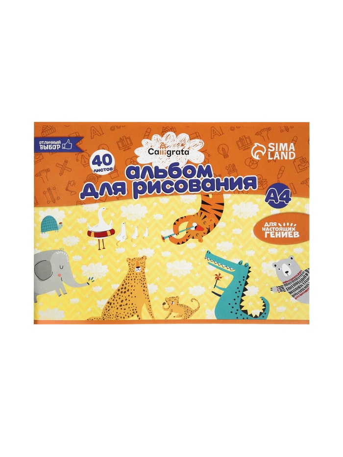Альбом для рисования Calligrata «Лев» А4, 40 листов на скрепке, обложка мелованный картон, внутренний блок офсет 100 г/м²