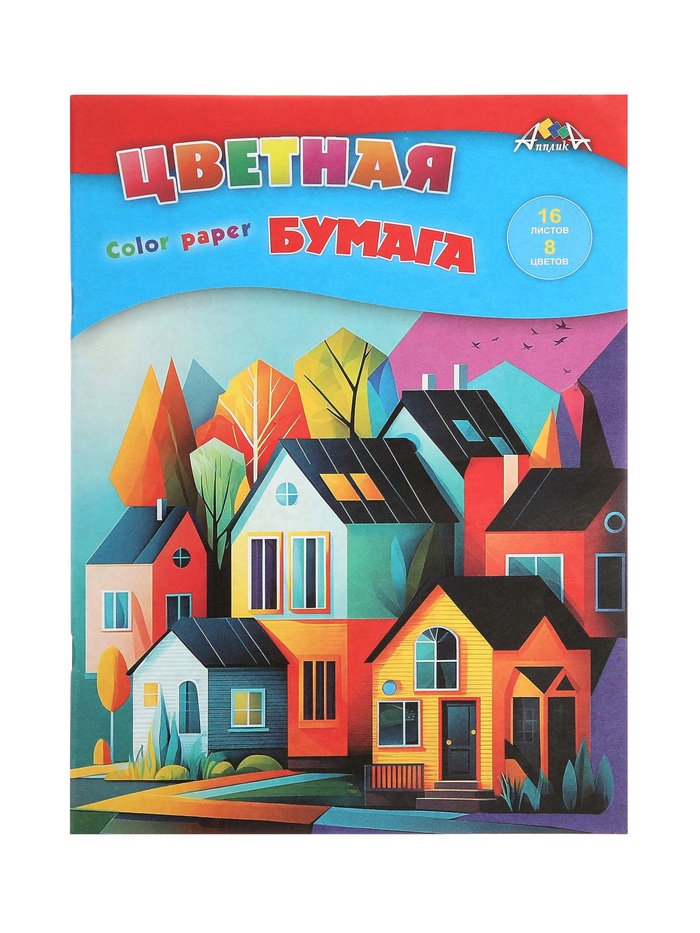 Бумага цветная А4 16л 8цв 50г/м² "Цветные домики", 2-стор, газет, скоба