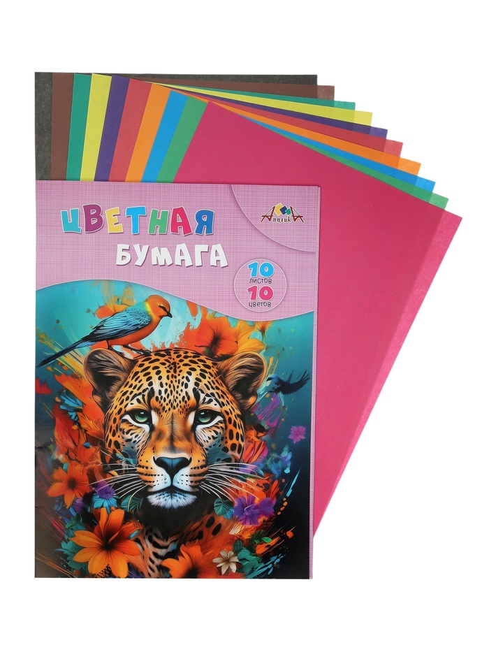 Бумага цветная А4 10л 10цв 70г/м² "Яркий леопард", 1-стор, офсет, папка