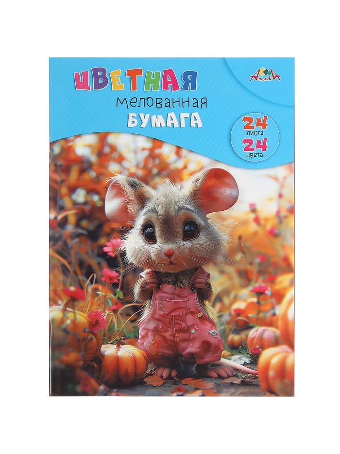 Бумага цветная А4 24л 24цв 60г/м² "Милый мышонок", 1-стор, мел бум, скоба