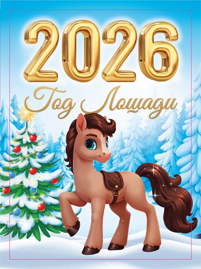 Магнит на холодильник и календарь отрывной 2026 «Новогодний конь. Счастья», 9.5×6.5 см