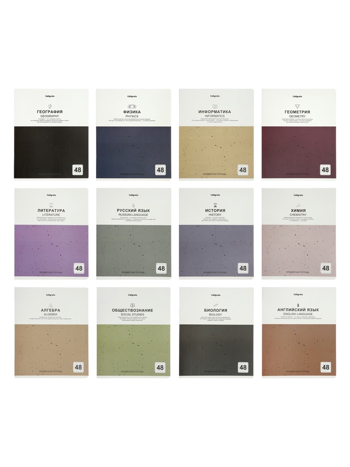 Комплект 12 предметных тетрадей 48 листов, справочная информация, 60гр, Мрамор пастель