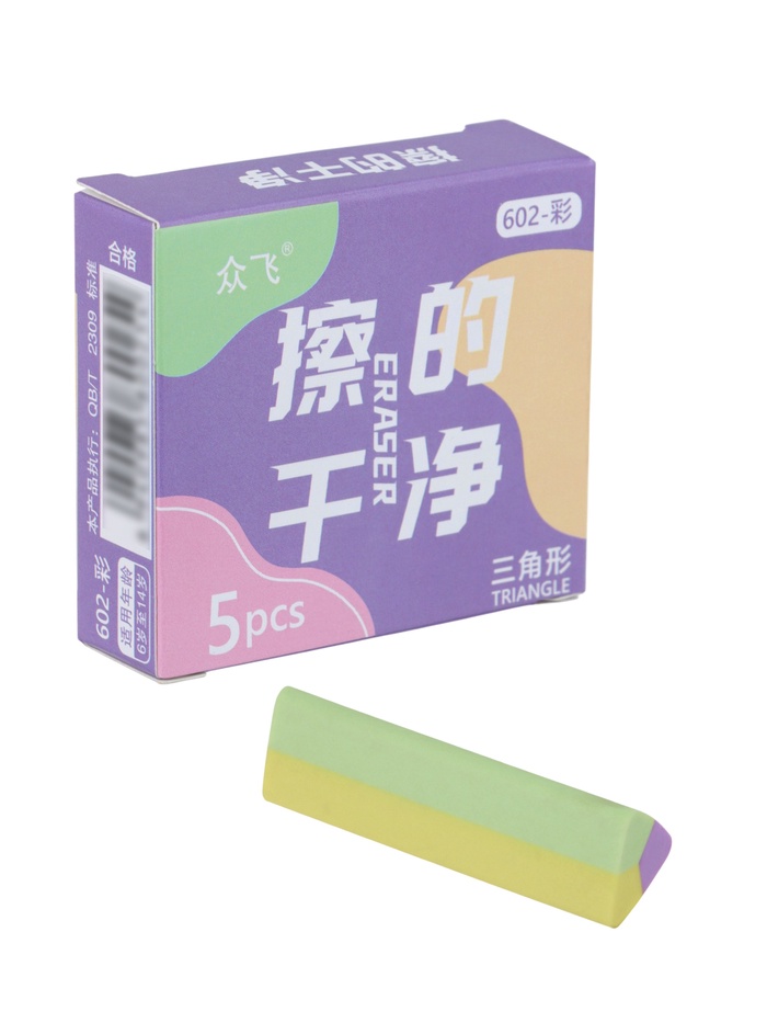 Набор ластиков 5 штук треугольных цветных, в коробке