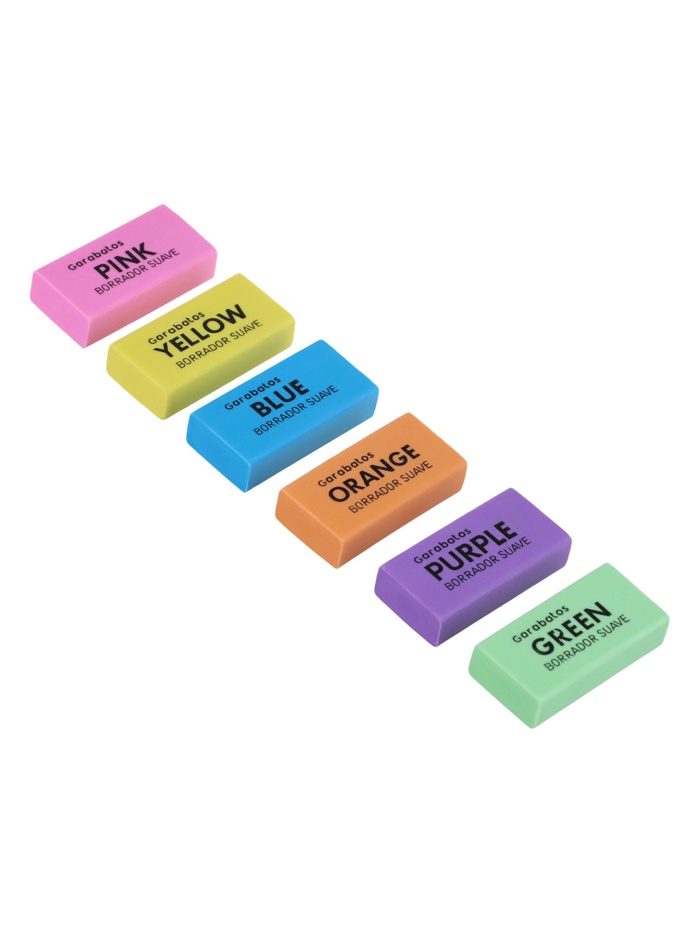Набор ластиков, 6 штук, прямоугольные, 6 цветов, в пакете