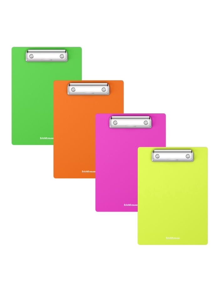 Планшет пластиковый с зажимом А4, 1.3 мм, ErichKrause Matt Neon, микс