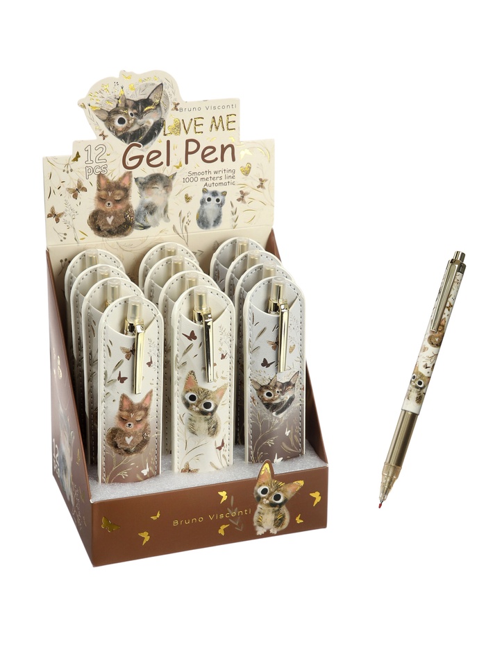 Ручка подарочная в чехле из экокожи, гелевая BrunoVisconti «Котики», автоматическая, синяя, 0.5 мм