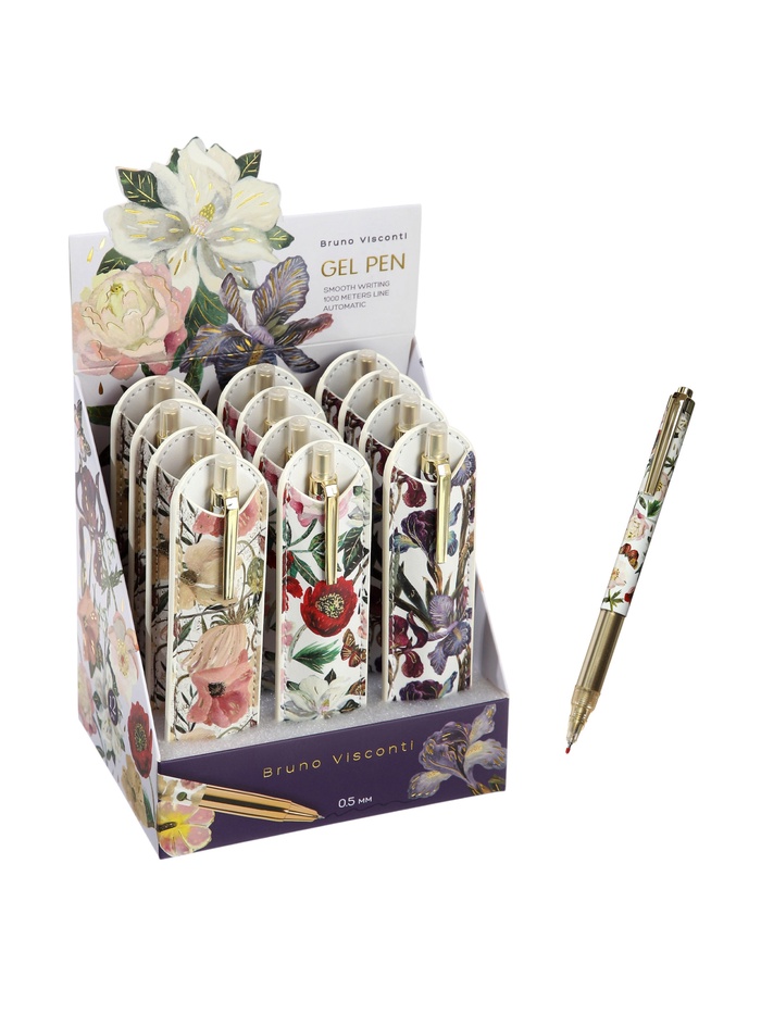 Ручка подарочная в чехле из экокожи гелевая BrunoVisconti: flowers, автоматическая, синяя, 0.5 мм