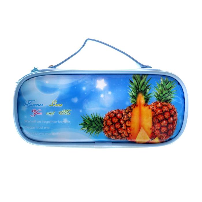 Пенал школьный, на молнии силиконовый "Фрукты", голубой