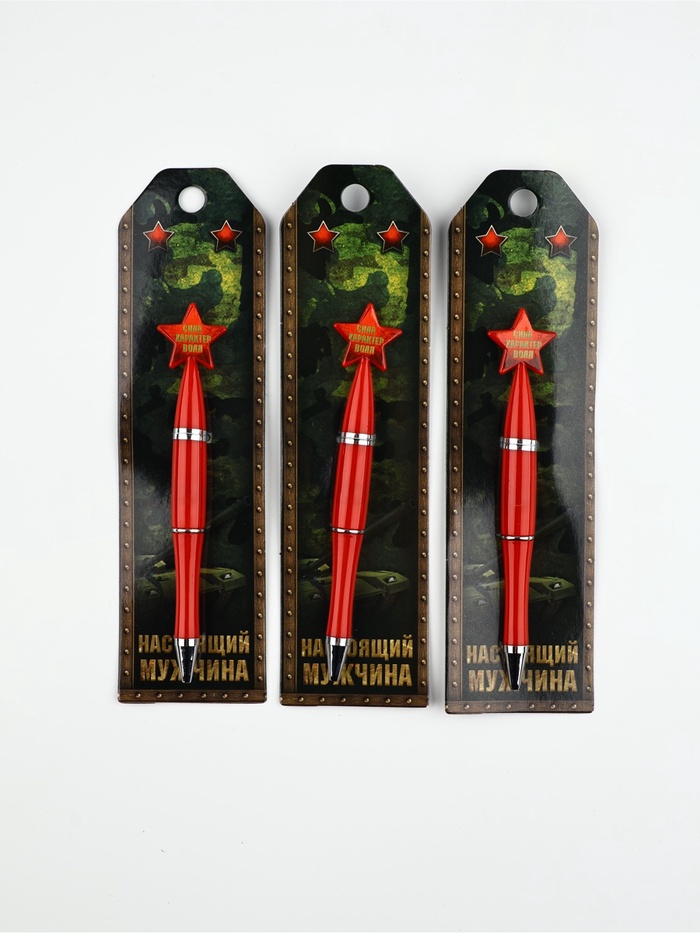 Набор 3 шт ручки "Настоящий мужчина" , пластик, со звездой на подложке- погон МП