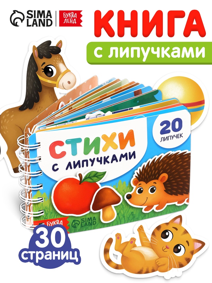 Книга с липучками на пружине, 20 липучек, 30 стр.