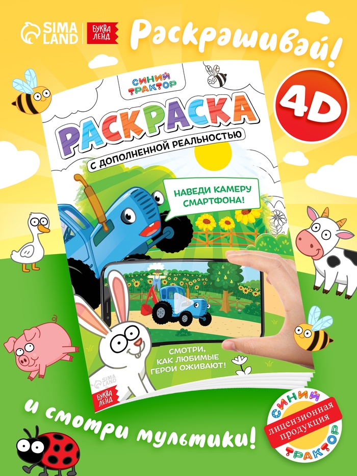 Раскраска с дополненной реальностью, А4, Синий трактор