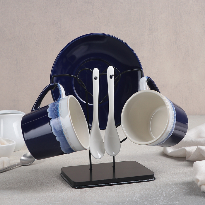 Набор чайный «Волна», 6 предметов: 2 чашки 200 мл, 2 блюдца 14 см, 2 ложки, на металлической подставке
