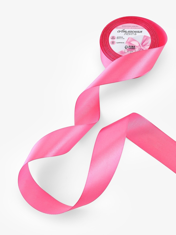 Лента атласная, 40 мм, 23 м±1 м, розовая