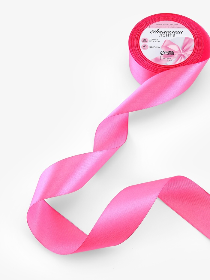 Лента атласная Арт Узор, 40 мм, 23 м±1 м, розовая