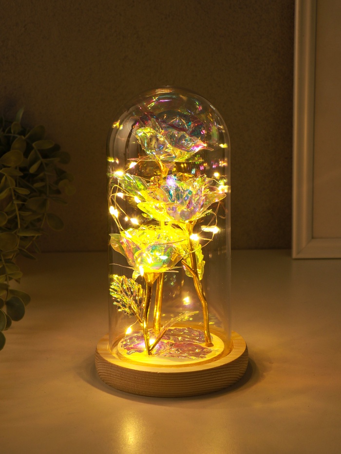 Фигурка светящаяся колба «3 розы», LED-ночник, 3×ААА, серебристый, 11×11×22 см