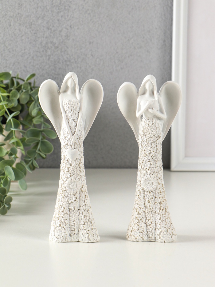 Фигурка полистоун «Безликий ангел в цветочном белом платье с сердцем», 20 см, МИКС