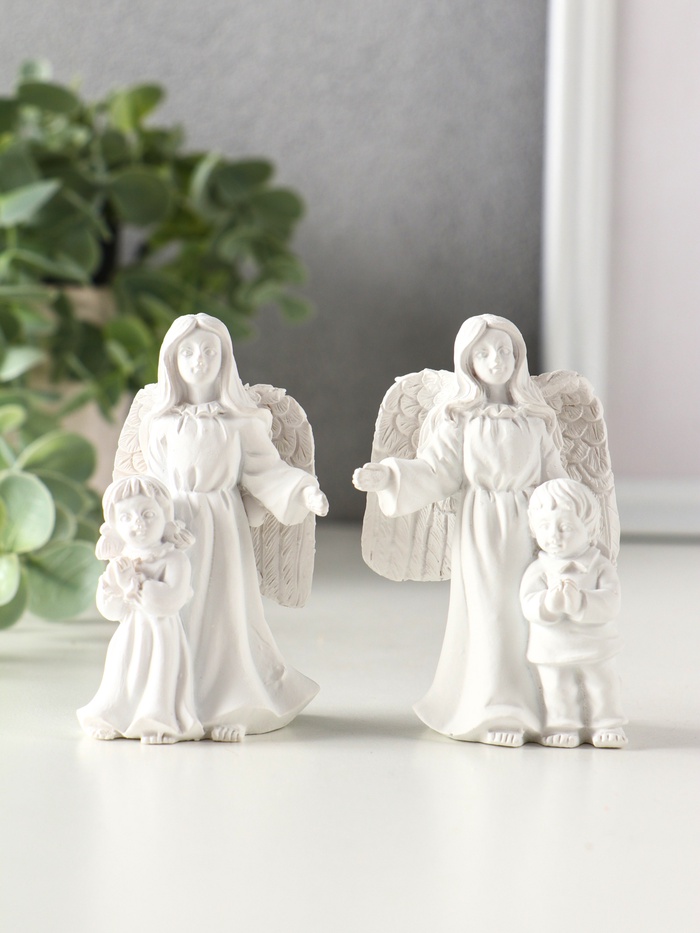 Фигурка полистоун «Девушка-ангел с ребёнком», белый, 5.2×4.2×8.3 см, МИКС