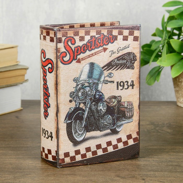 Шкатулка-книга «Быстрый мотор», дерево, кожзам, 16×11×4.5 см