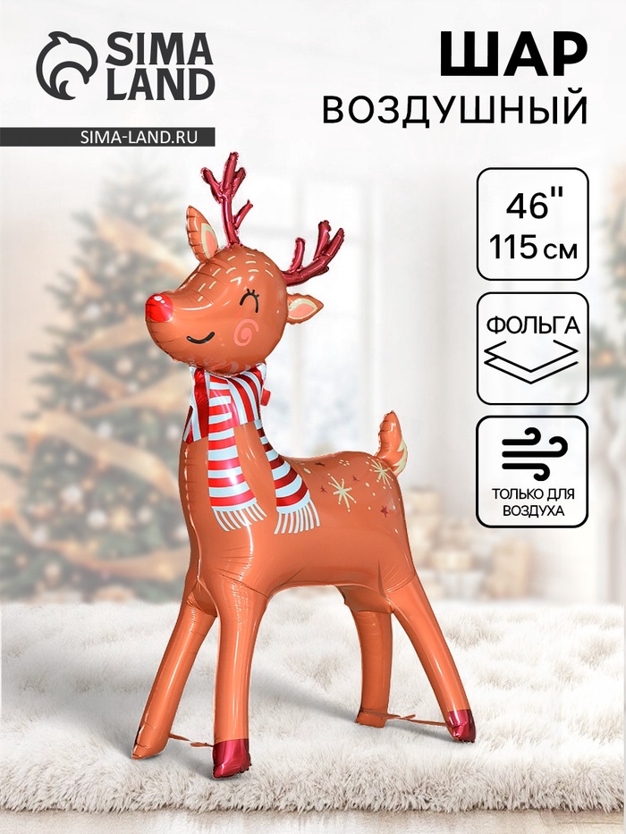 Воздушный шар фольгированный 46" «Новогодний олень», под воздух