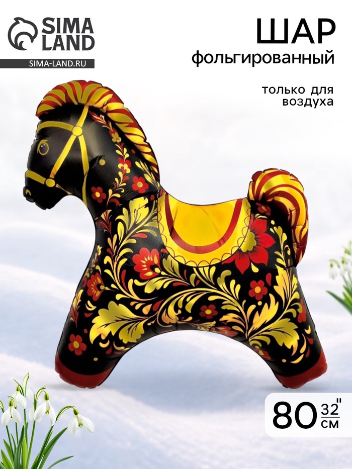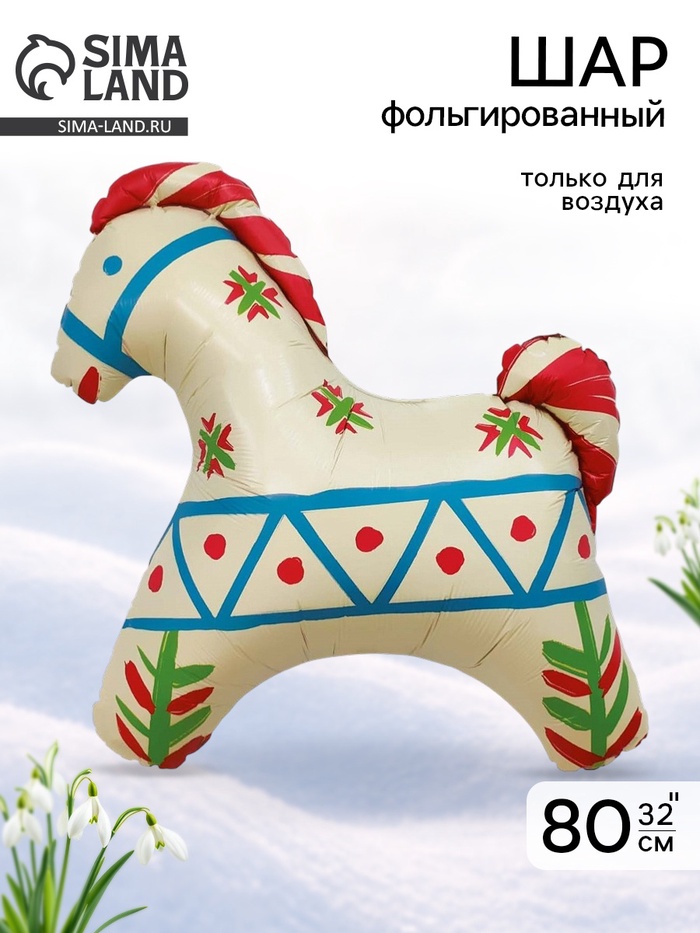Воздушный шар фольгированный 32" «Лошадка белая», русский узор