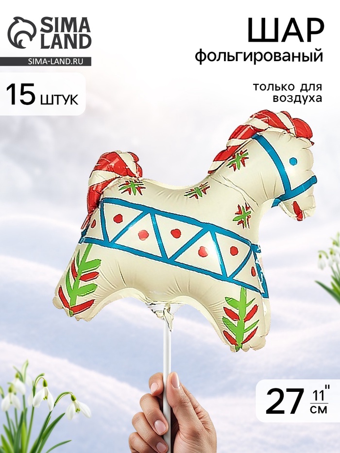 Воздушный шар фольгированный 11" «Лошадка белая», русский узор, набор 5 штук