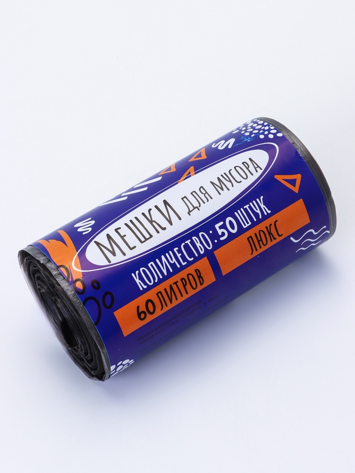 Мешки для мусора в рулоне 60 л, черные, ПНД, 9 мкм, 50 шт.