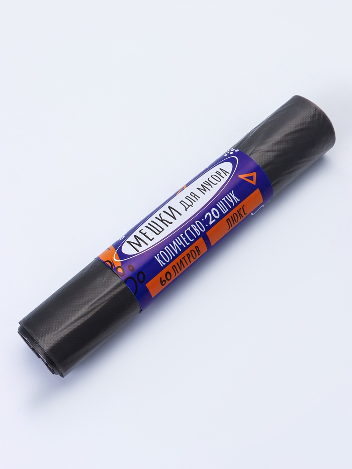 Мешки для мусора 60 л, ПНД, толщина 20 мкм, 20 шт. в рулоне, чёрные