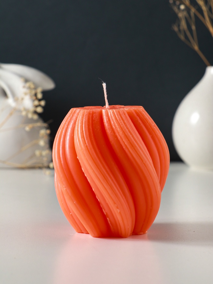 Свеча-цилиндр 9×8 см, 220 г, с нарезкой, персик