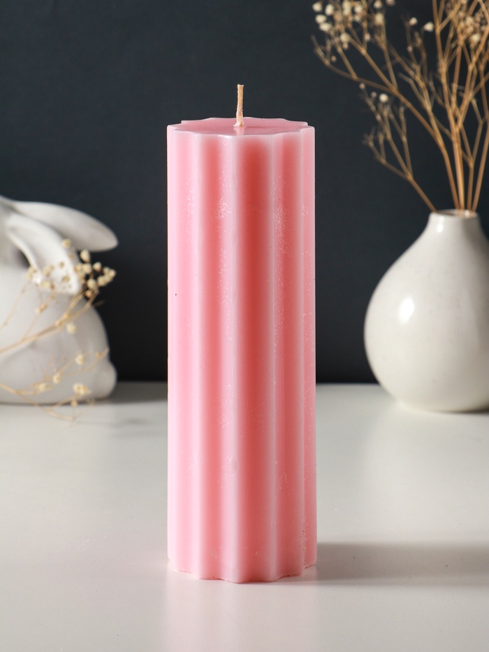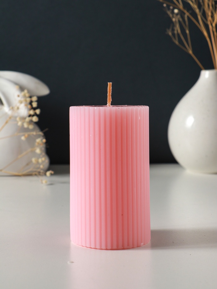 Свеча-цилиндр 6×10 см, 250 г, с мелкими гранями, розовый